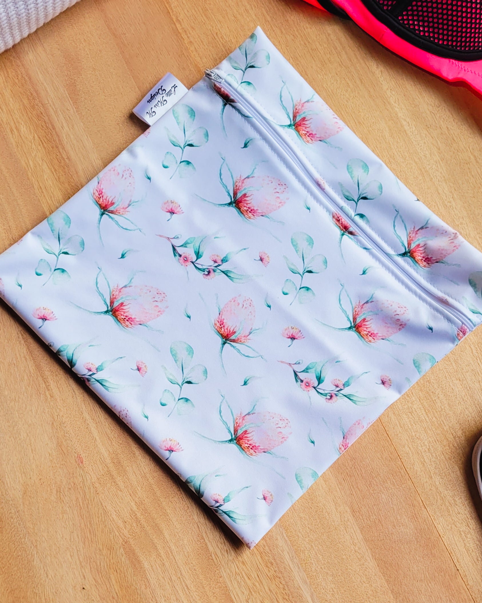 WET BAGS Keep your wet clothes, swimming togs or nappies in Little Miss M Designs Wet Bags. They are made from a waterproof fabric and will keep your wet items contained.