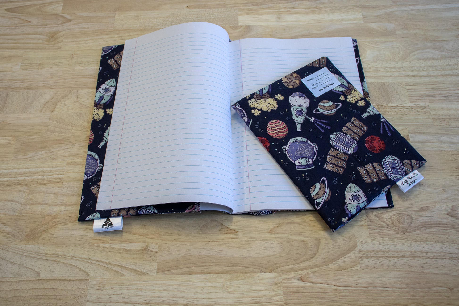 With Little Miss M Designs book covers you will have no need to buy plastic covers or contact for any books. They are handmade in Australia from 100% cotton with A label on the front for your name, subject and year. The covers fit very snug to the book.