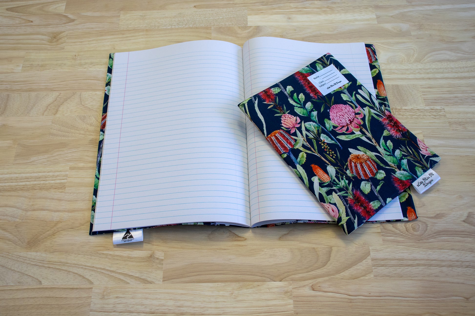 With Little Miss M Designs book covers you will have no need to buy plastic covers or contact for any books. They are handmade in Australia from 100% cotton with A label on the front for your name, subject and year. The covers fit very snug to the book.