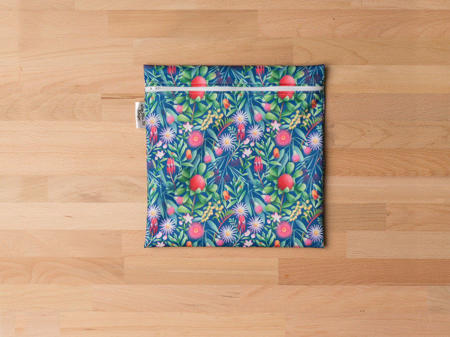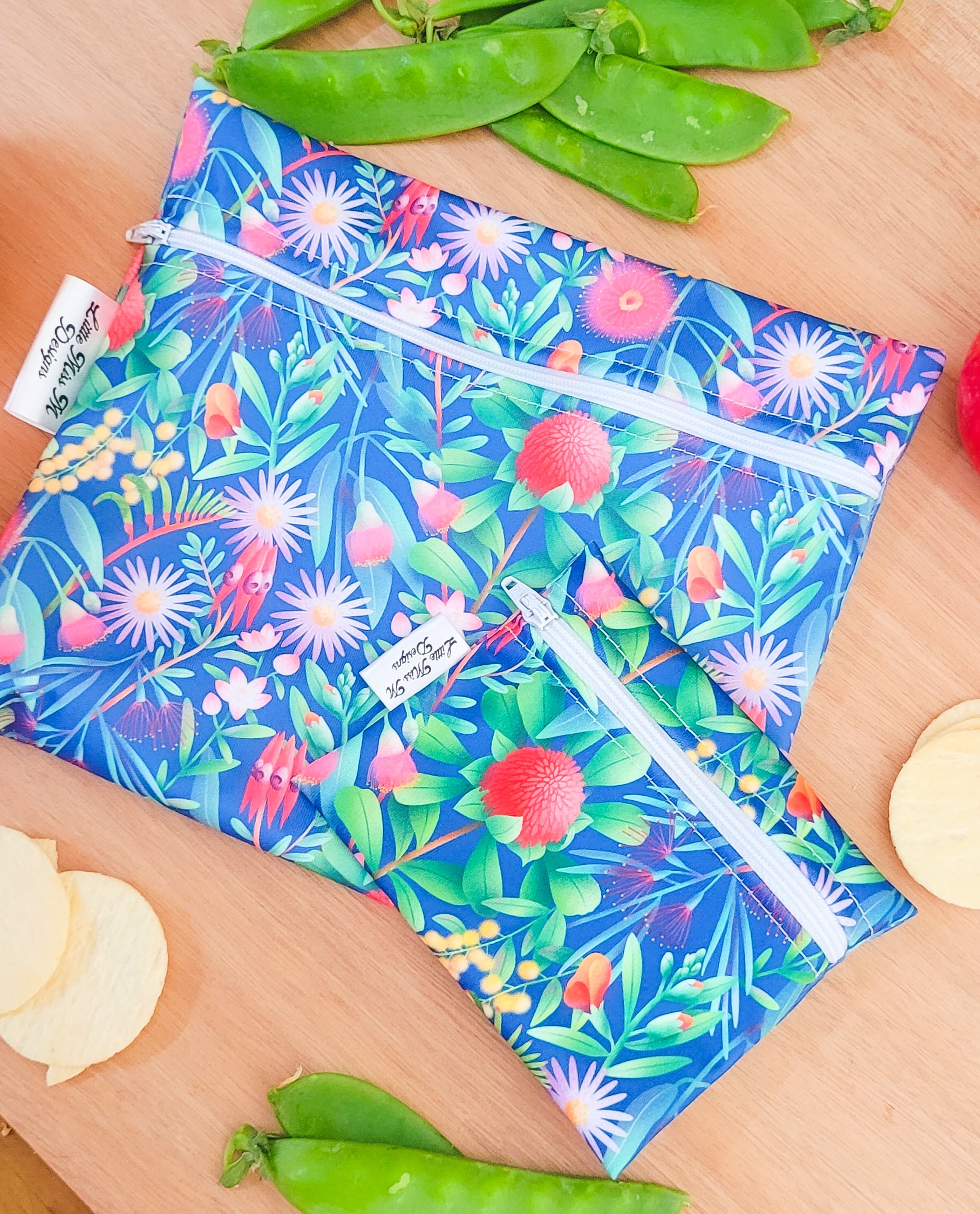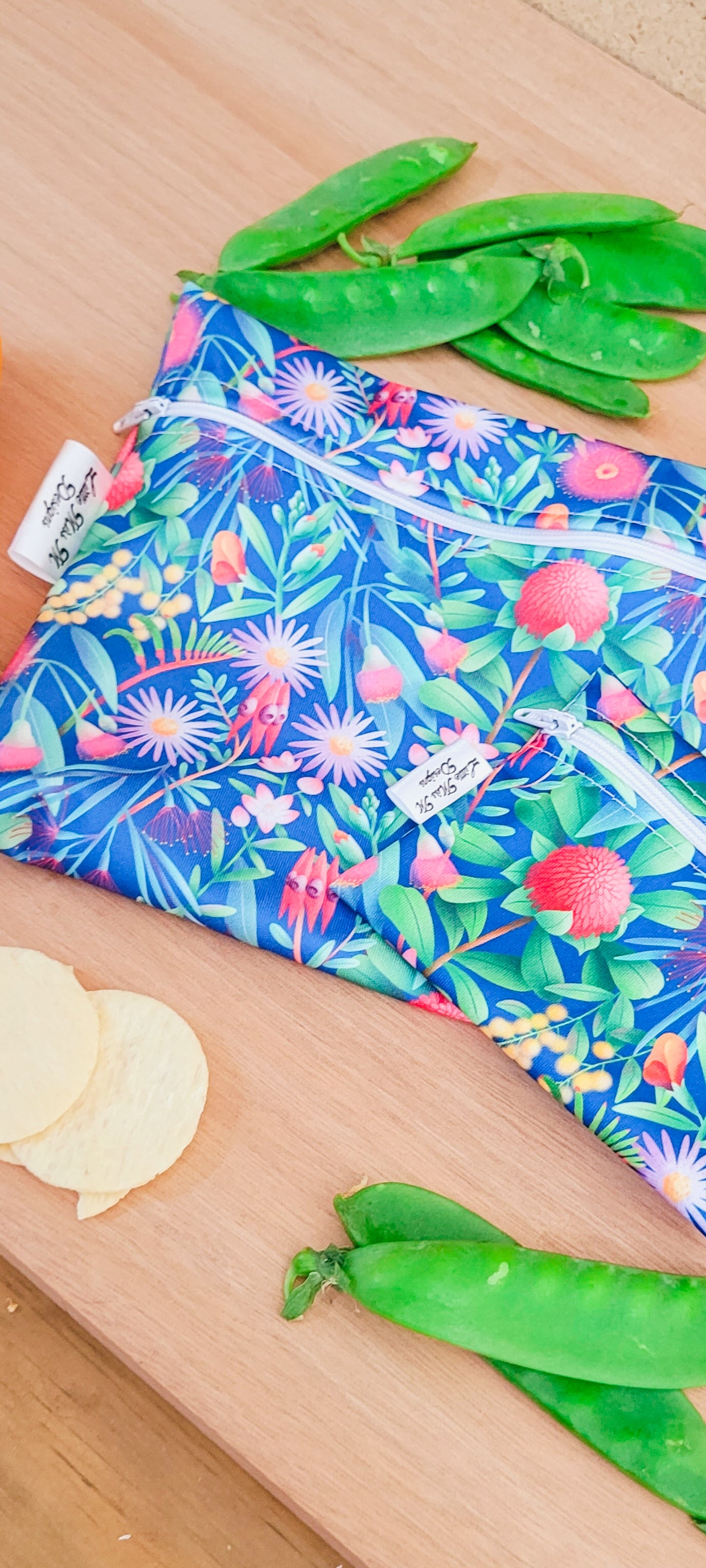 SNACK BAGS Keep your food fresh and your items organized with Little Miss M Designs Pty Ltd handmake Snack Bags. The material used is a PUL food safe material which has a waterproof layer on the inside so it is easy to clean and water resistant. To close and open the bag is a zip which means easy for little fingers to open and close and NO Velcro.