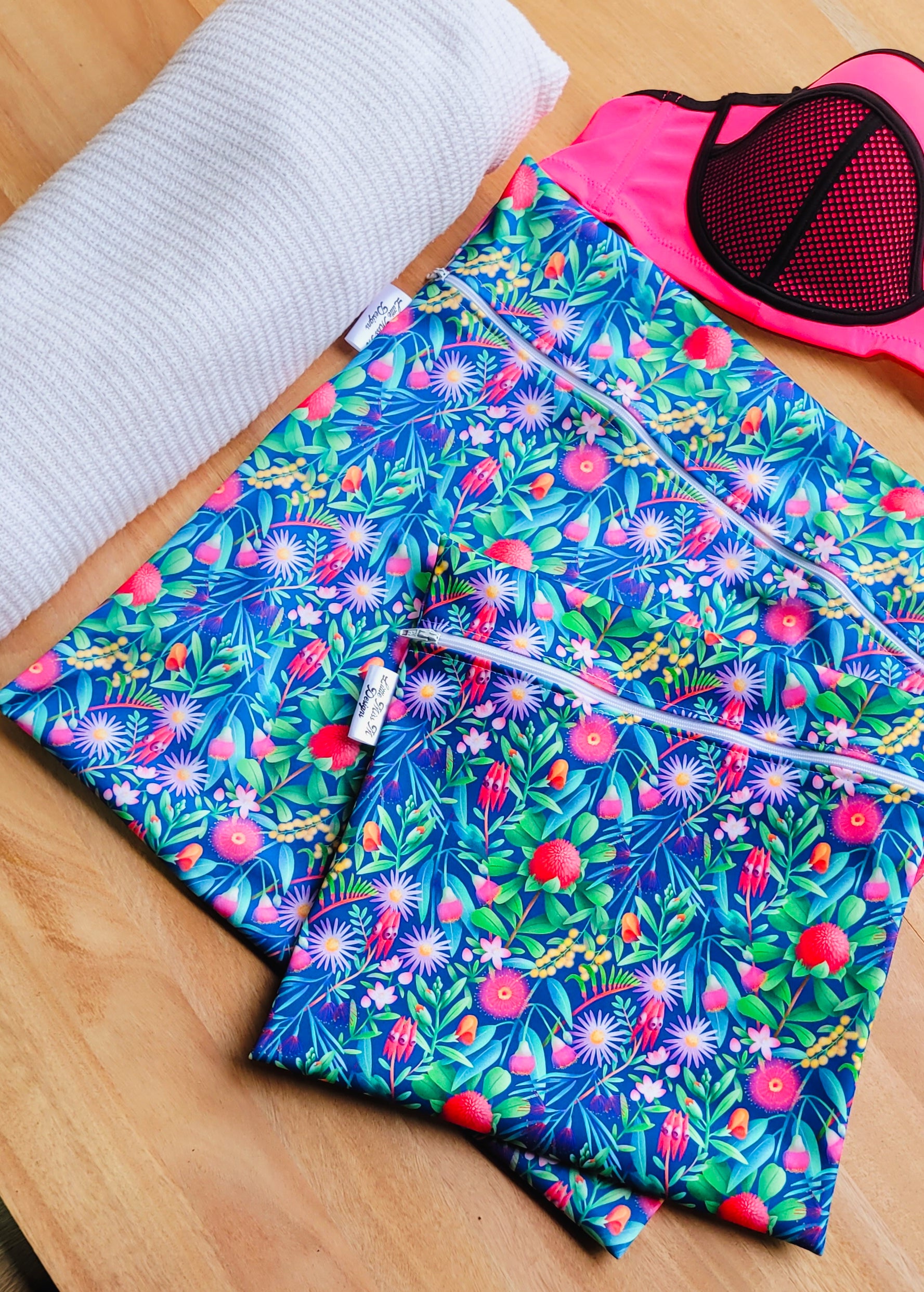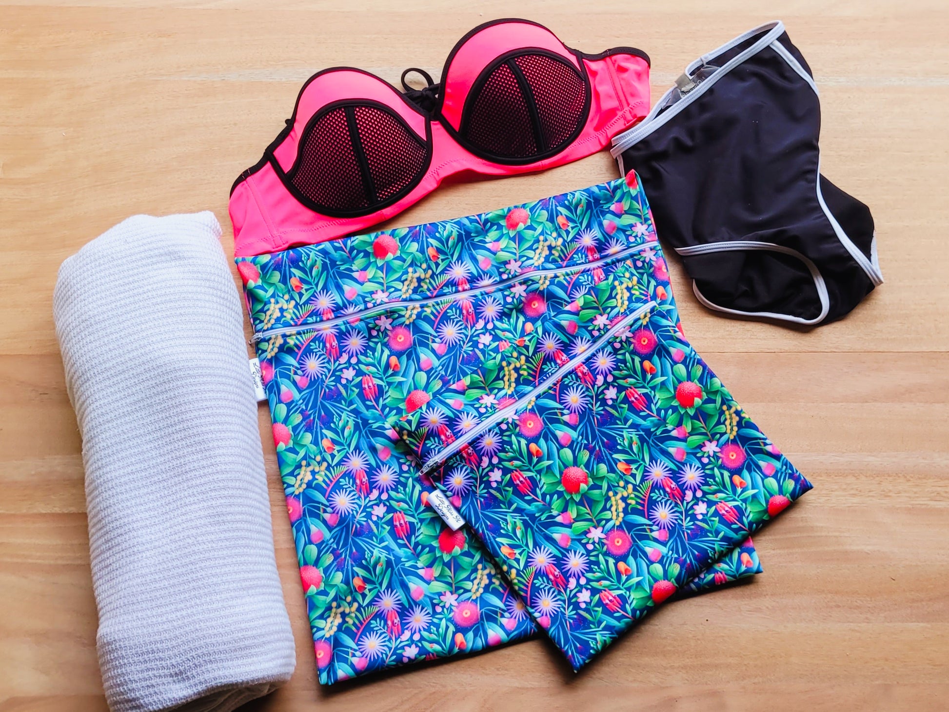 WET BAGS Keep your wet clothes, swimming togs or nappies in Little Miss M Designs Wet Bags. They are made from a waterproof fabric and will keep your wet items contained.