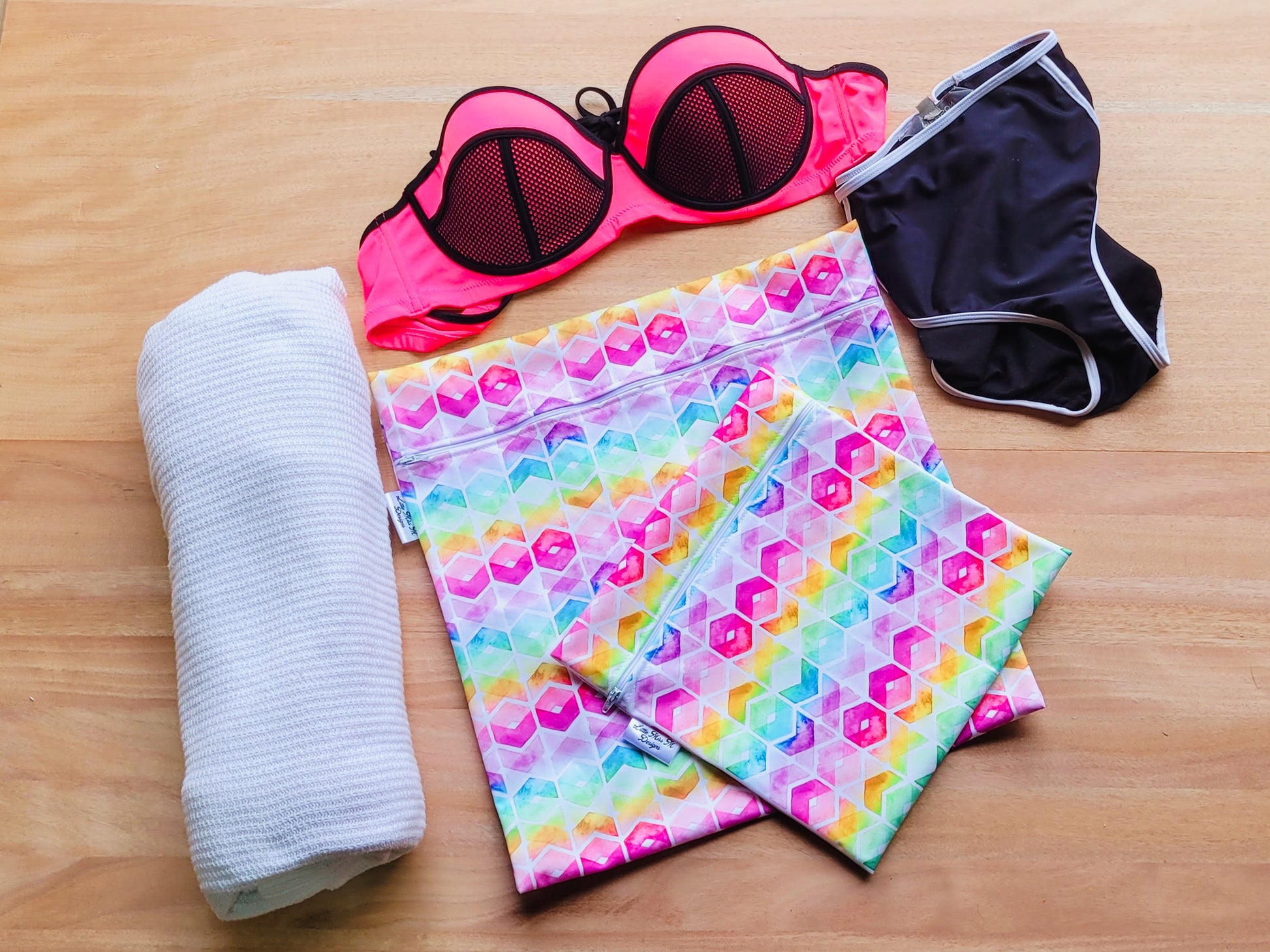 WET BAGS Keep your wet clothes, swimming togs or nappies in Little Miss M Designs Wet Bags. They are made from a waterproof fabric and will keep your wet items contained.