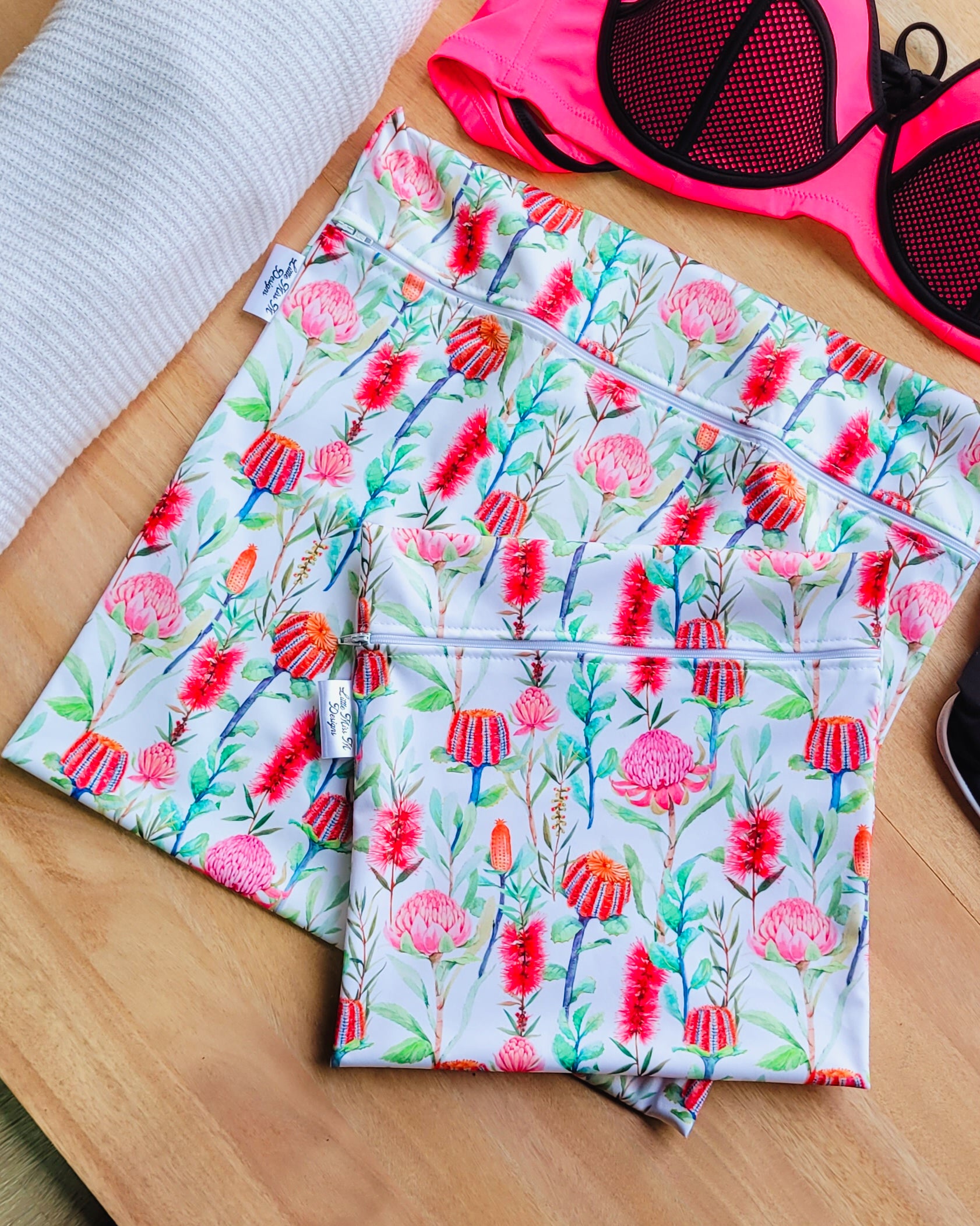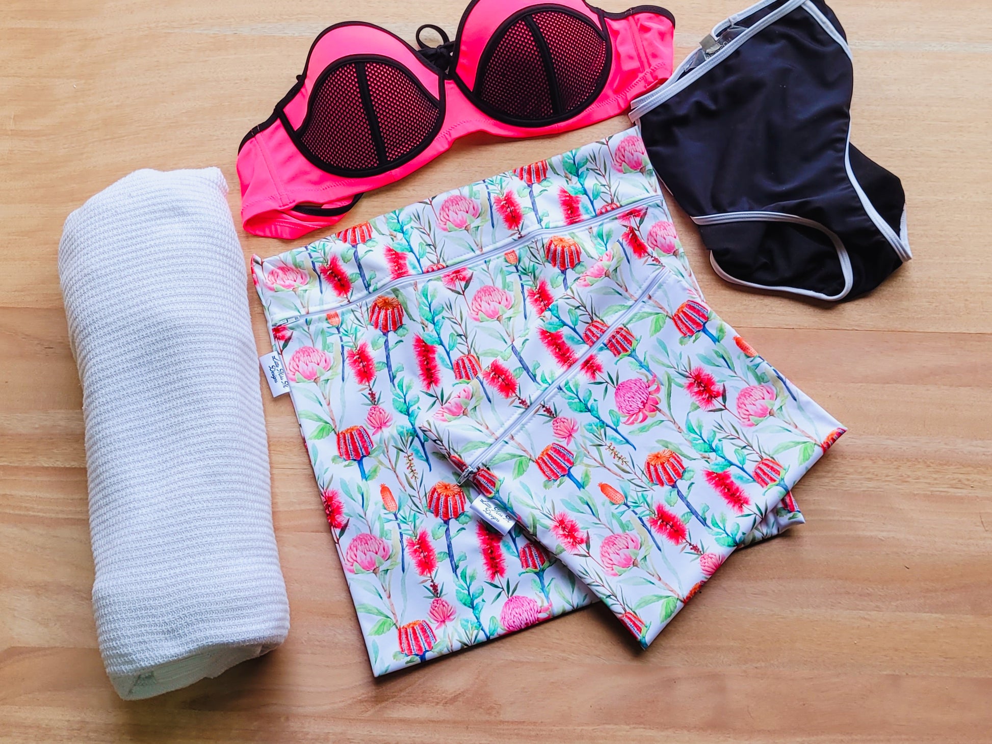 WET BAGS Keep your wet clothes, swimming togs or nappies in Little Miss M Designs Wet Bags. They are made from a waterproof fabric and will keep your wet items contained.