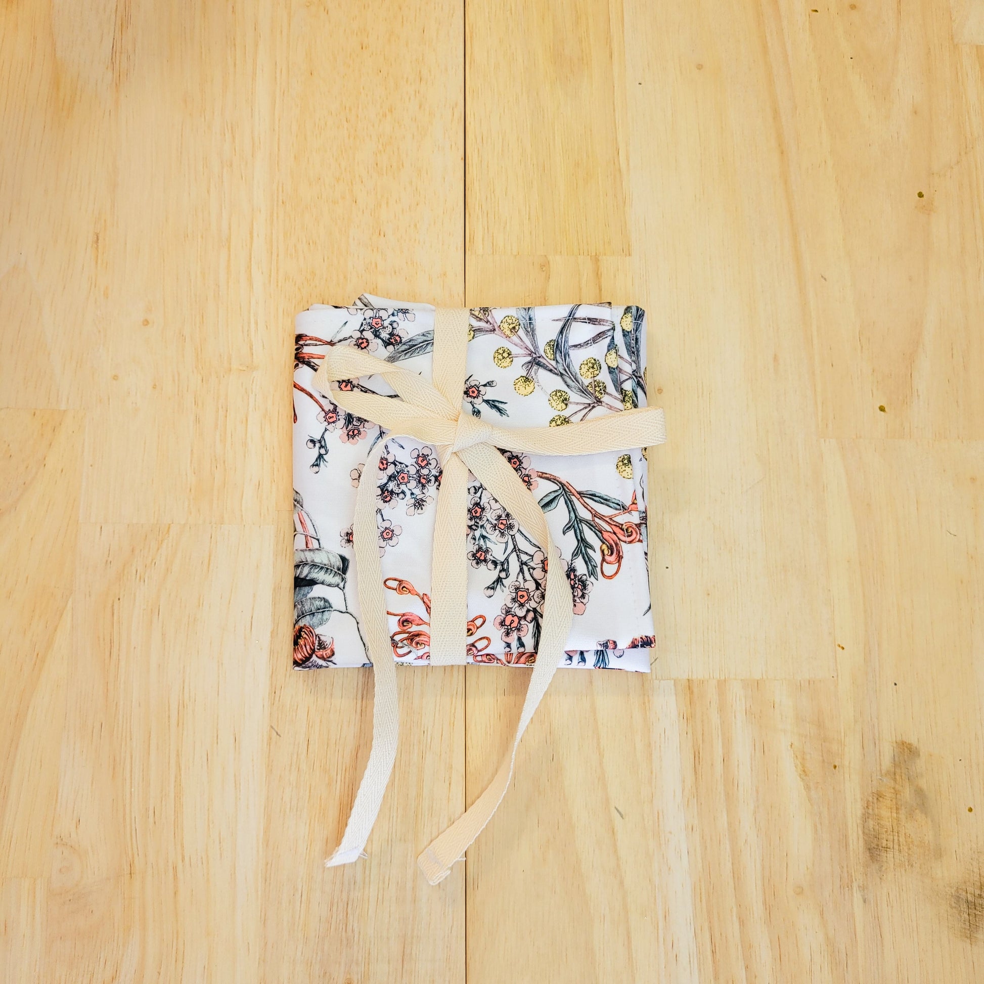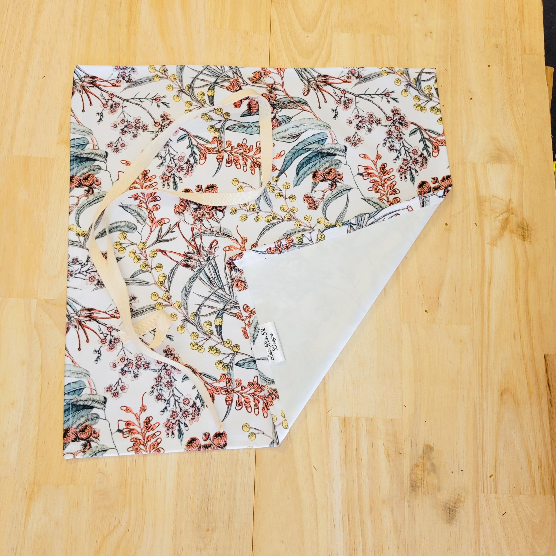 Our Food wraps are made from a high-quality laminated fabric and a 100% cotton ribbon which can be washed by placing in the washing machine. Once the food is wrapped you can secure it by tying a bow, this allows little fingers to open easily.