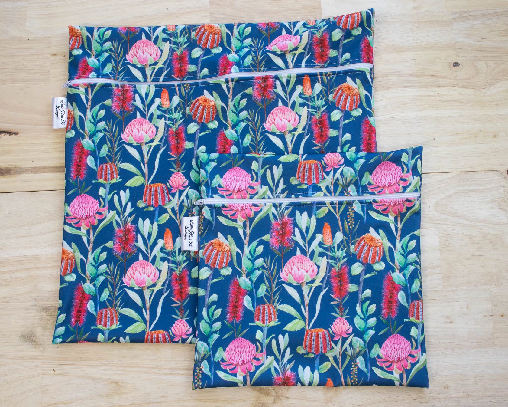 WET BAGS Keep your wet clothes, swimming togs or nappies in Little Miss M Designs Wet Bags. They are made from a waterproof fabric and will keep your wet items contained.