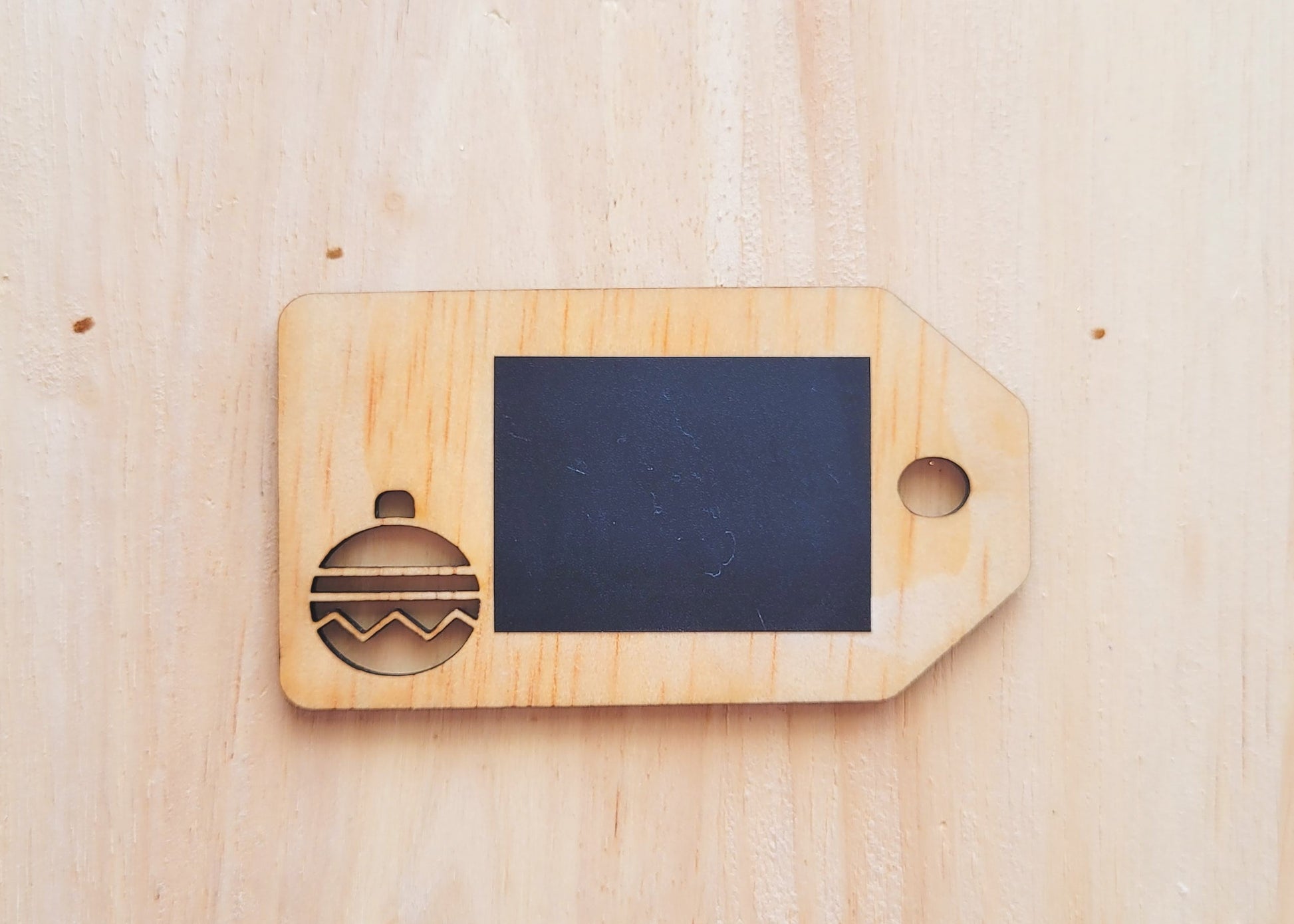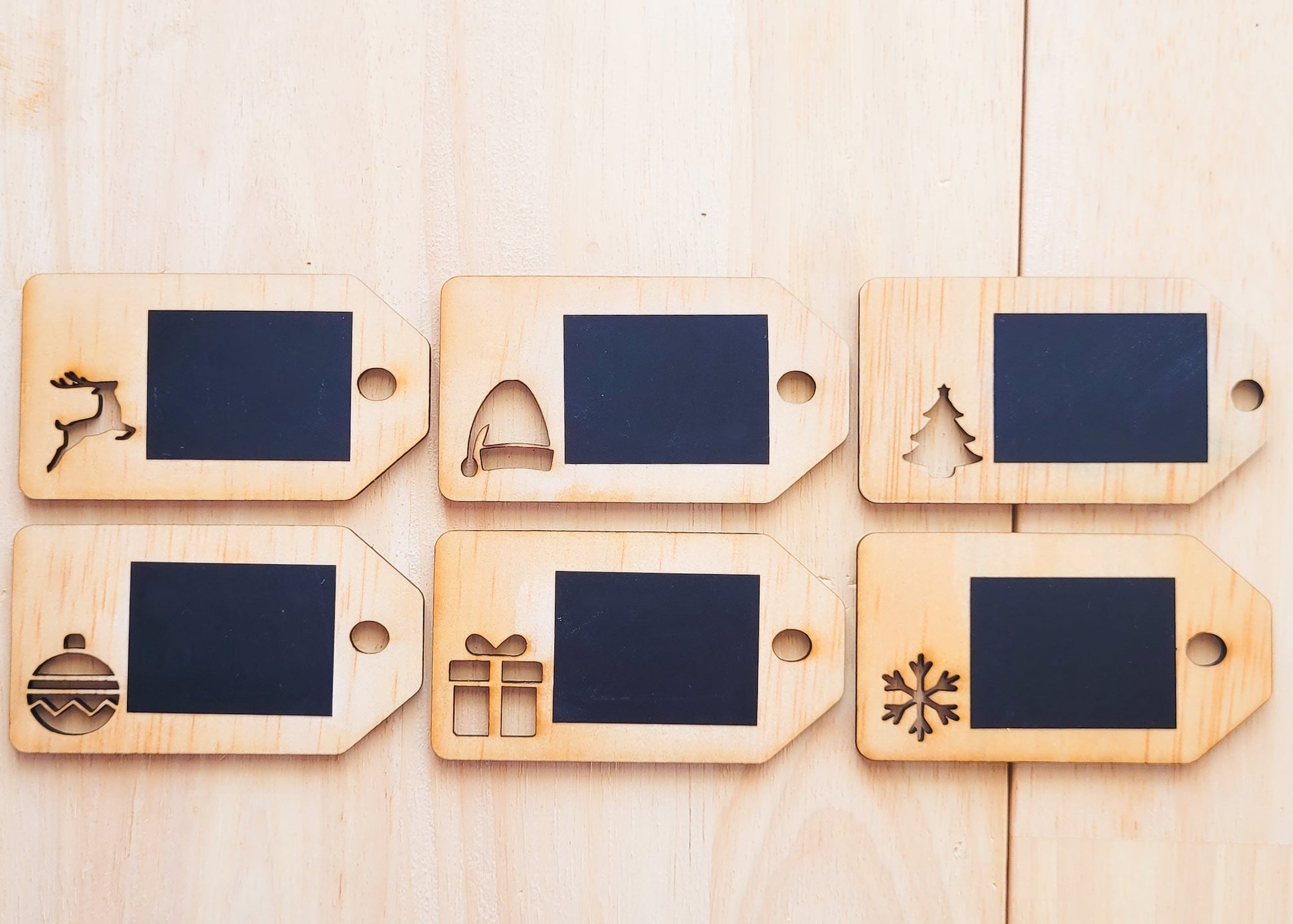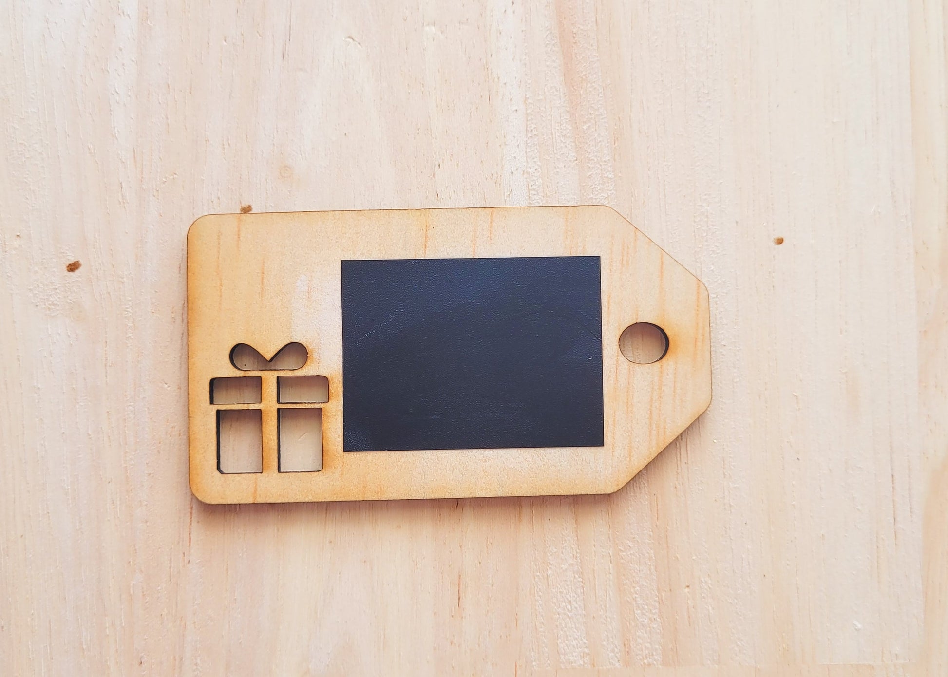 The Tags are made from Timber and contain a Black Board area to write the recipients name. This means after giving the recipient can wipe off their name off with a wet cloth and write in chalk the next lucky person they wish to give to. To make it even more special a picture is etched or laser cut for the special occasion.