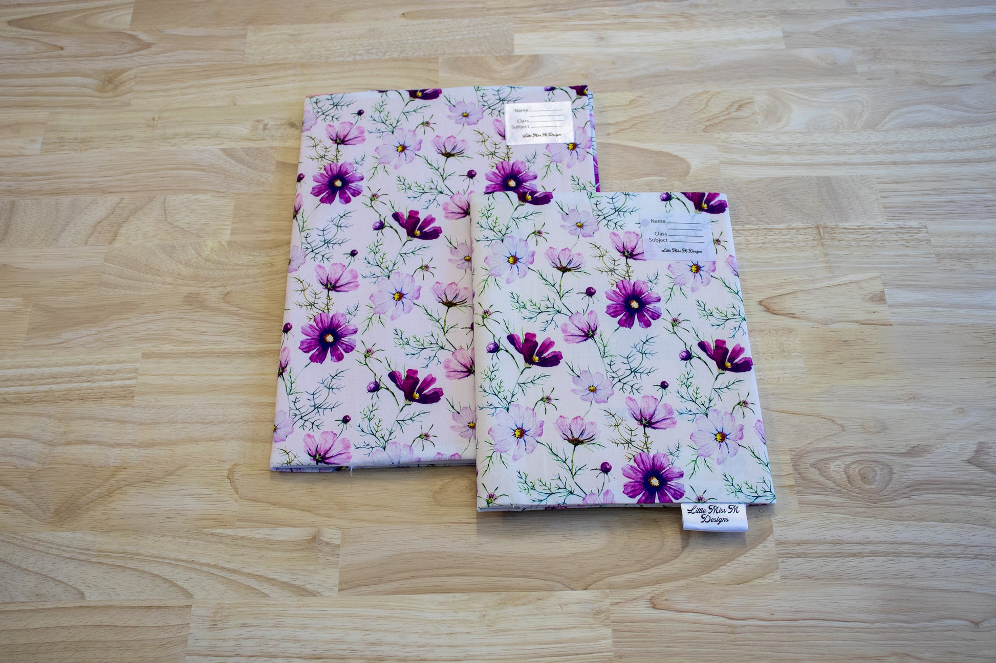 With Little Miss M Designs book covers you will have no need to buy plastic covers or contact for any books. They are handmade in Australia from 100% cotton with A label on the front for your name, subject and year. The covers fit very snug to the book.