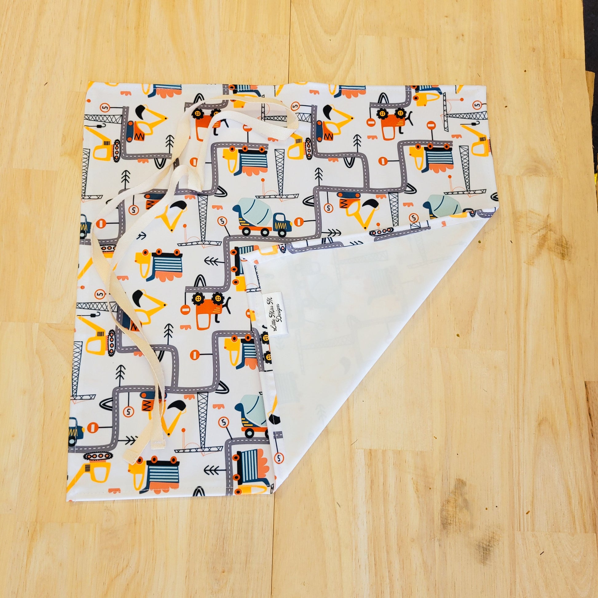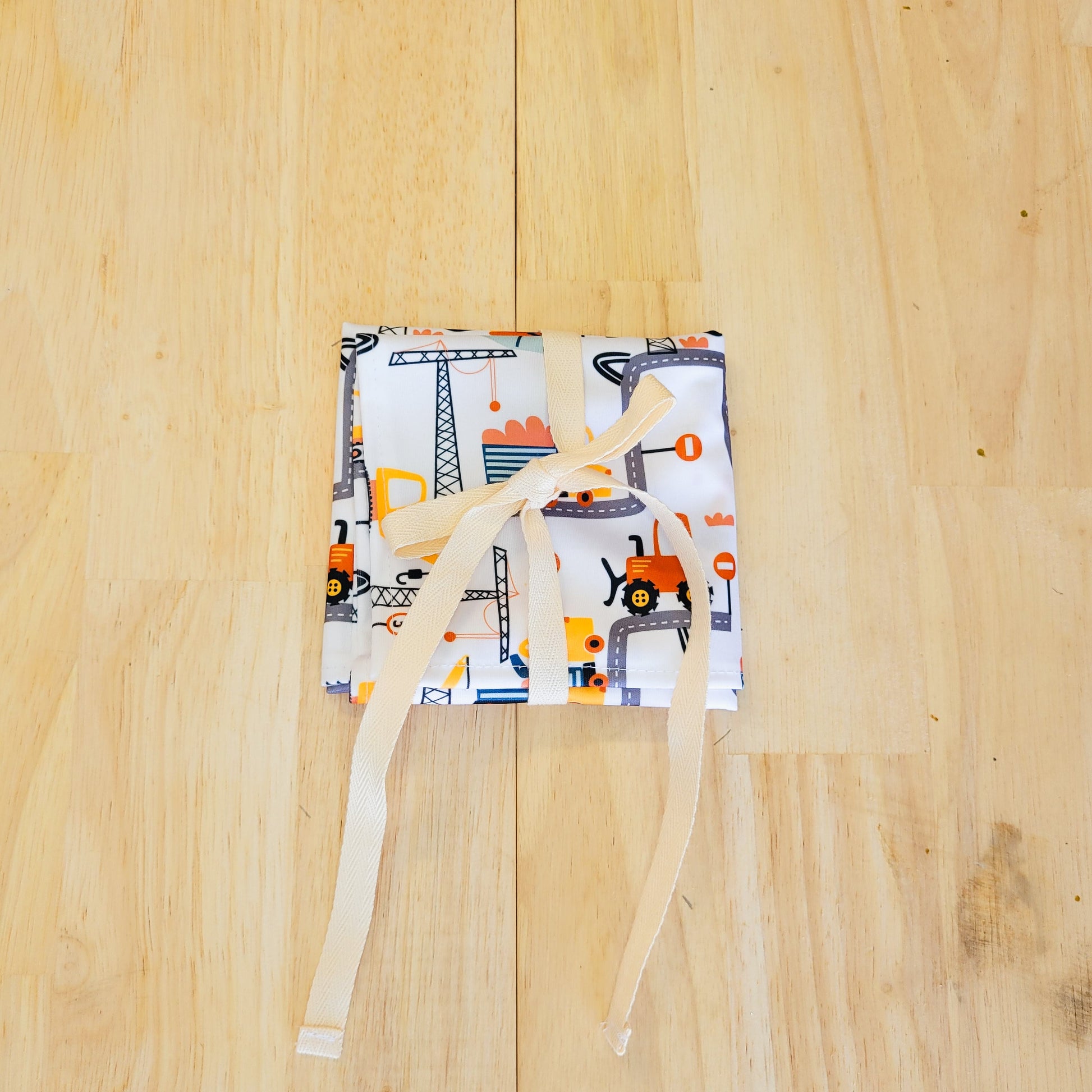 Our Food wraps are made from a high-quality laminated fabric and a 100% cotton ribbon which can be washed by placing in the washing machine. Once the food is wrapped you can secure it by tying a bow, this allows little fingers to open easily.