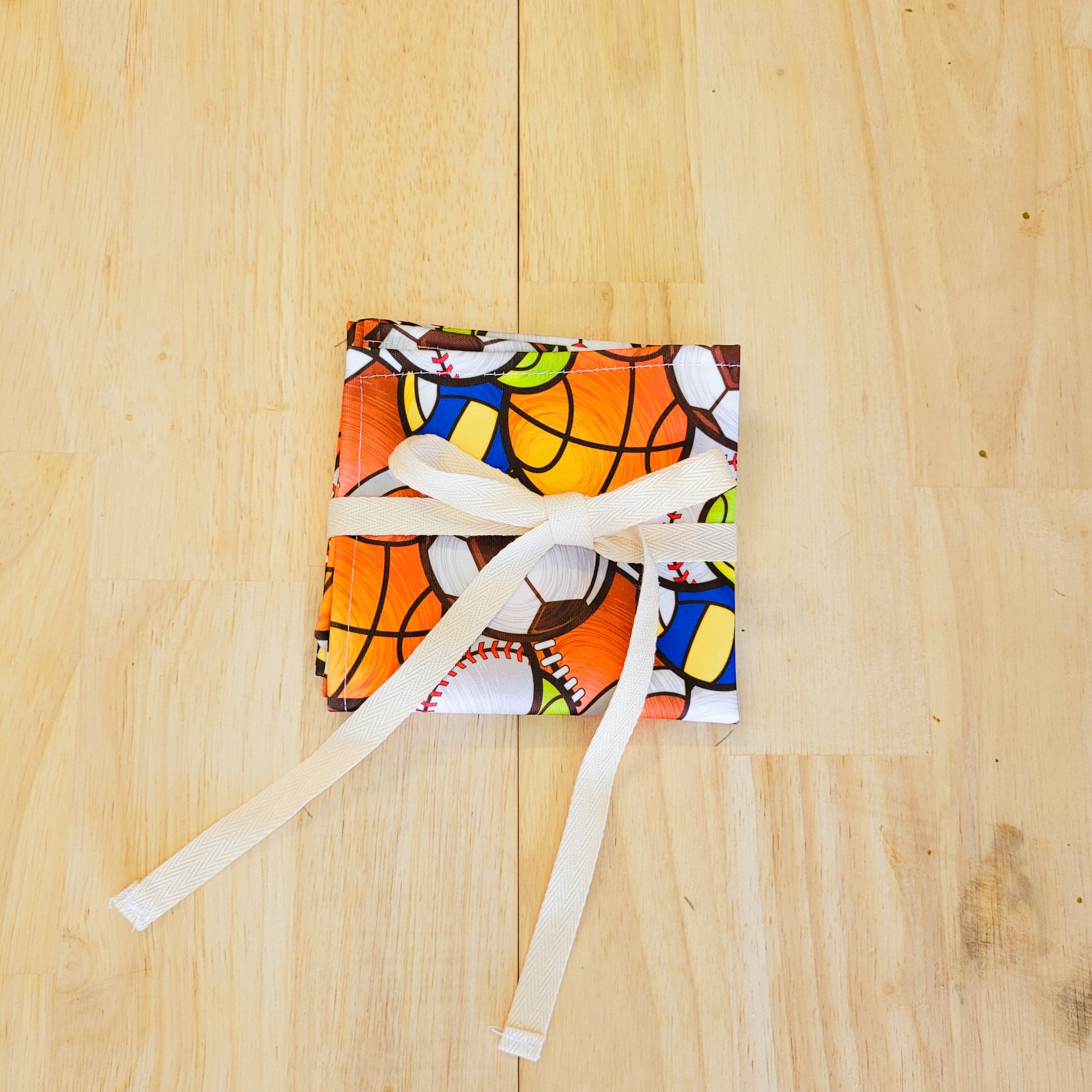 Our Food wraps are made from a high-quality laminated fabric and a 100% cotton ribbon which can be washed by placing in the washing machine. Once the food is wrapped you can secure it by tying a bow, this allows little fingers to open easily.