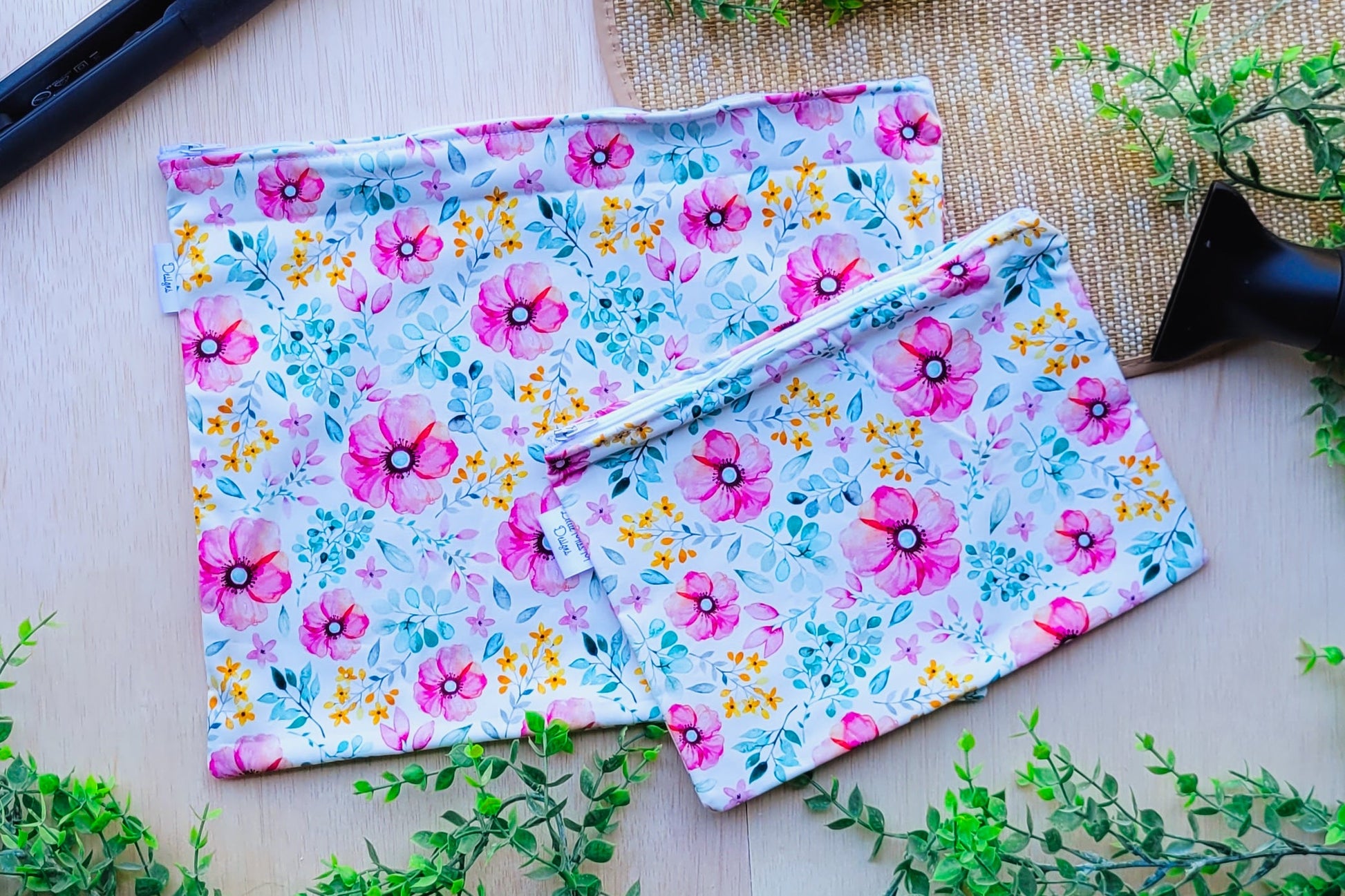 Keep all your beauty products in our practical, modern & stylish Travel Bags. We have 2 sizes available a Small - which is great for your makeup, skincare and travel essentials (our makeup wipes, Soap & Toothbrush Bags are great addition to these) ... and Large which will hold both your hairdryer and straightener. Made from 2 layers of 100% cotton with an easy open and close zipper. The inside is overlocked so no fraying will occur. They can be easily washed - just place in the washing machine with the zipper open and iron once dried.