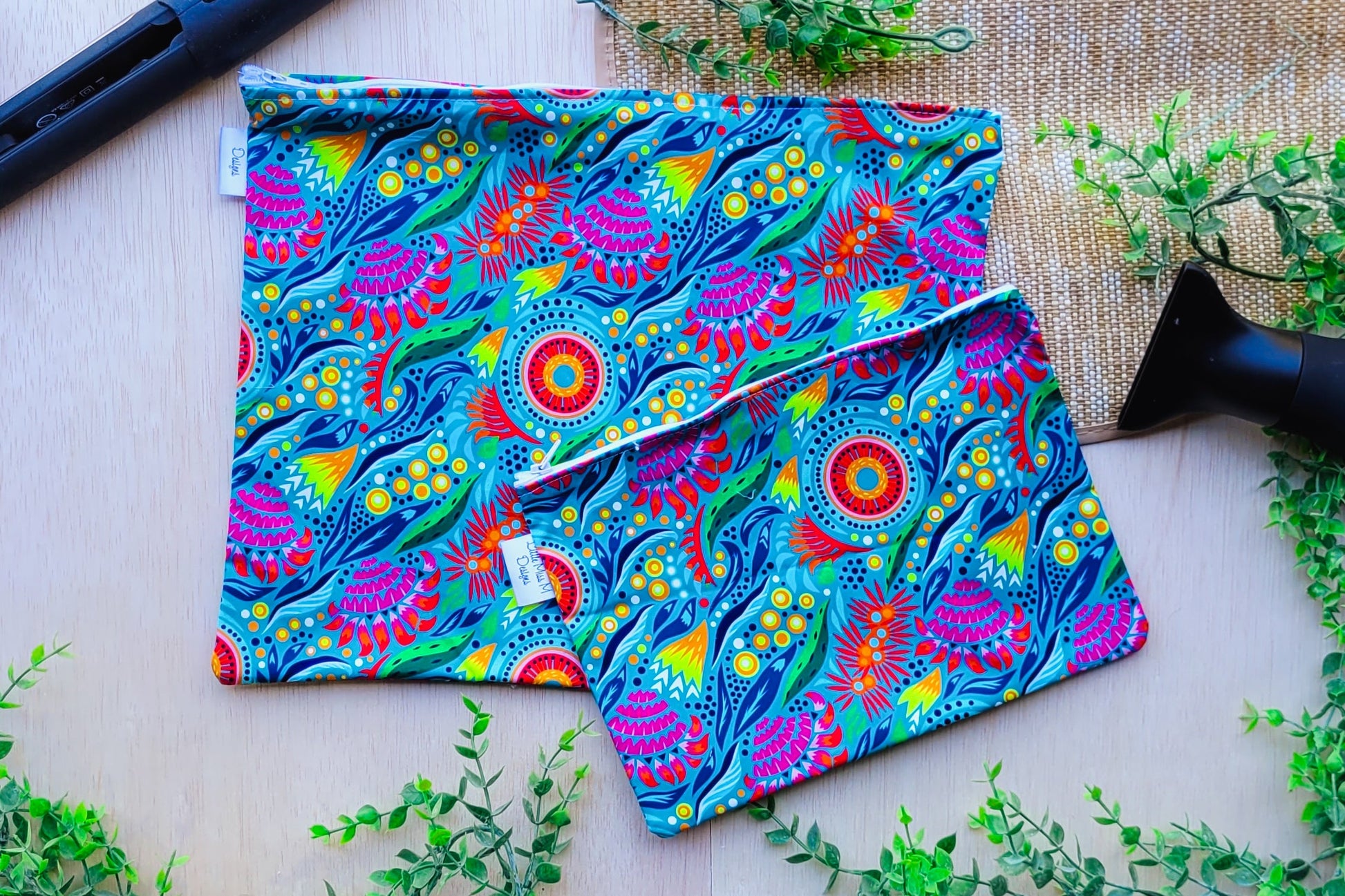 Keep all your beauty products in our practical, modern & stylish Travel Bags. We have 2 sizes available a Small - which is great for your makeup, skincare and travel essentials (our makeup wipes, Soap & Toothbrush Bags are great addition to these) ... and Large which will hold both your hairdryer and straightener. Made from 2 layers of 100% cotton with an easy open and close zipper. The inside is overlocked so no fraying will occur. They can be easily washed - just place in the washing machine with the zipper open and iron once dried.