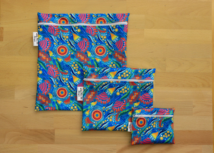 Washing – Turn the bag inside out and wipe out the crumbs with a cloth. You can wash the with your dishes and leave on the drying rack overnight to air or general machine wash with your clothes or towels. DO NOT Iron the product, place in the dryer, bleach and only warm wash up to 60°C. Please note that whilst PUL can be laundered on a 90°C wash and tumble dried, we do not recommend that you do so as it